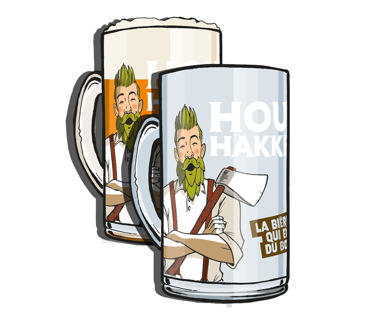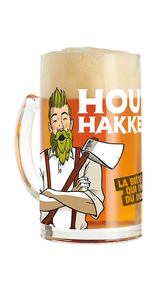 La chope conserve la fraîcheur, concentre les arômes et surtout : une chope c’est solide et celle-ci résiste à ses mains robustes ! On raconte d’ailleurs dans le Houtland, qu’après une dégustation, il peut arriver qu’on voit apparaître la hache du bûcheron dans le fond du verre…