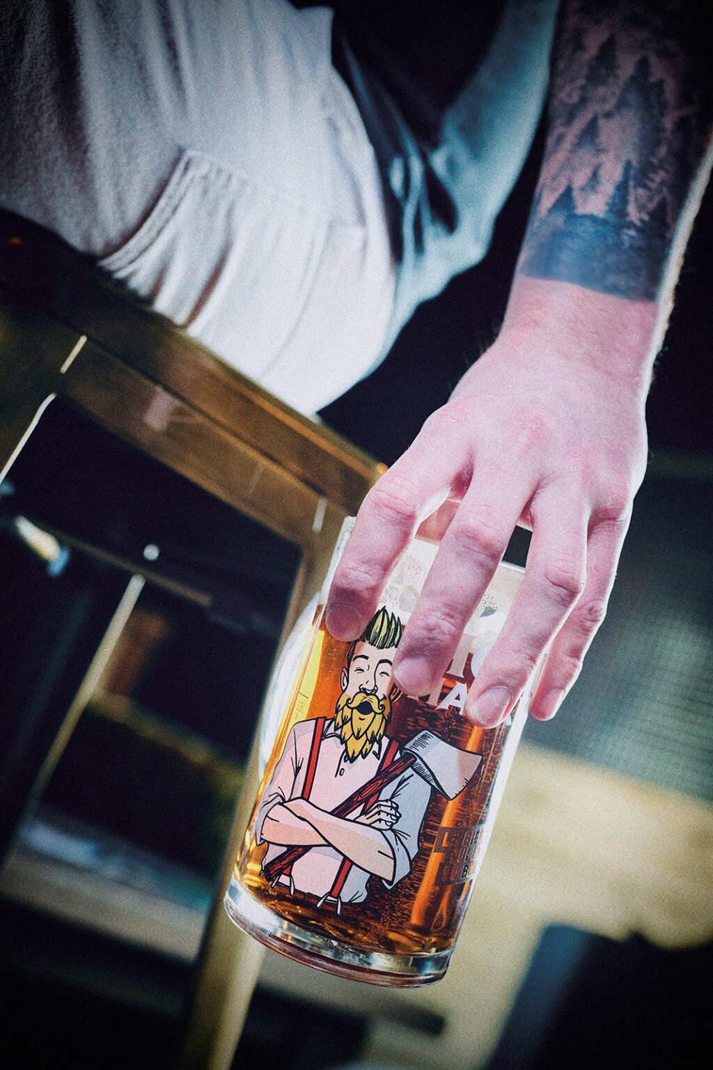 Piet a toujours dégusté la bière dans une chope… un verre qui lui rappelle les bûches de bois. Et quand la bière est bien fraîche, c’est idéal !